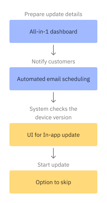 The existing process had limited remote support capabilities, requiring clinicians to return devices for even minor updates. To avoid the disruption, users often delayed updates, creating significant business risk.