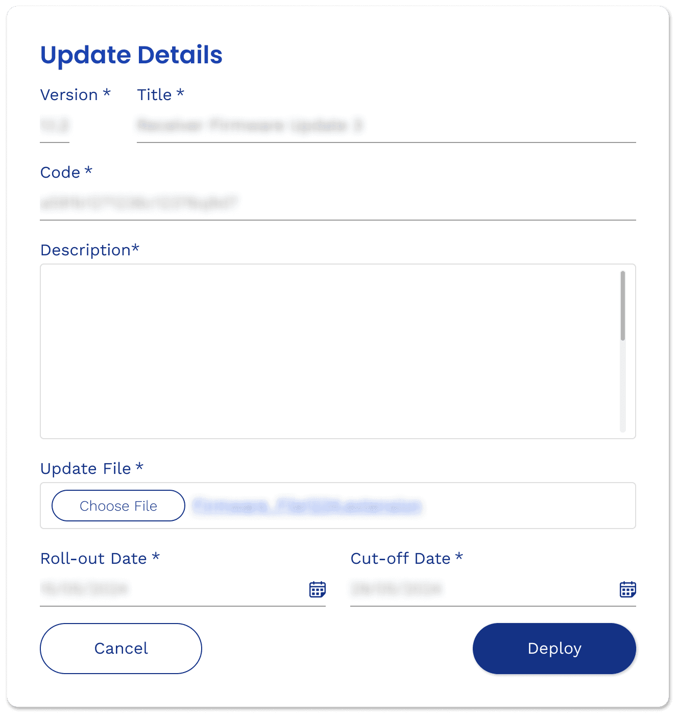 Screen details anonymized for NDA compliance.